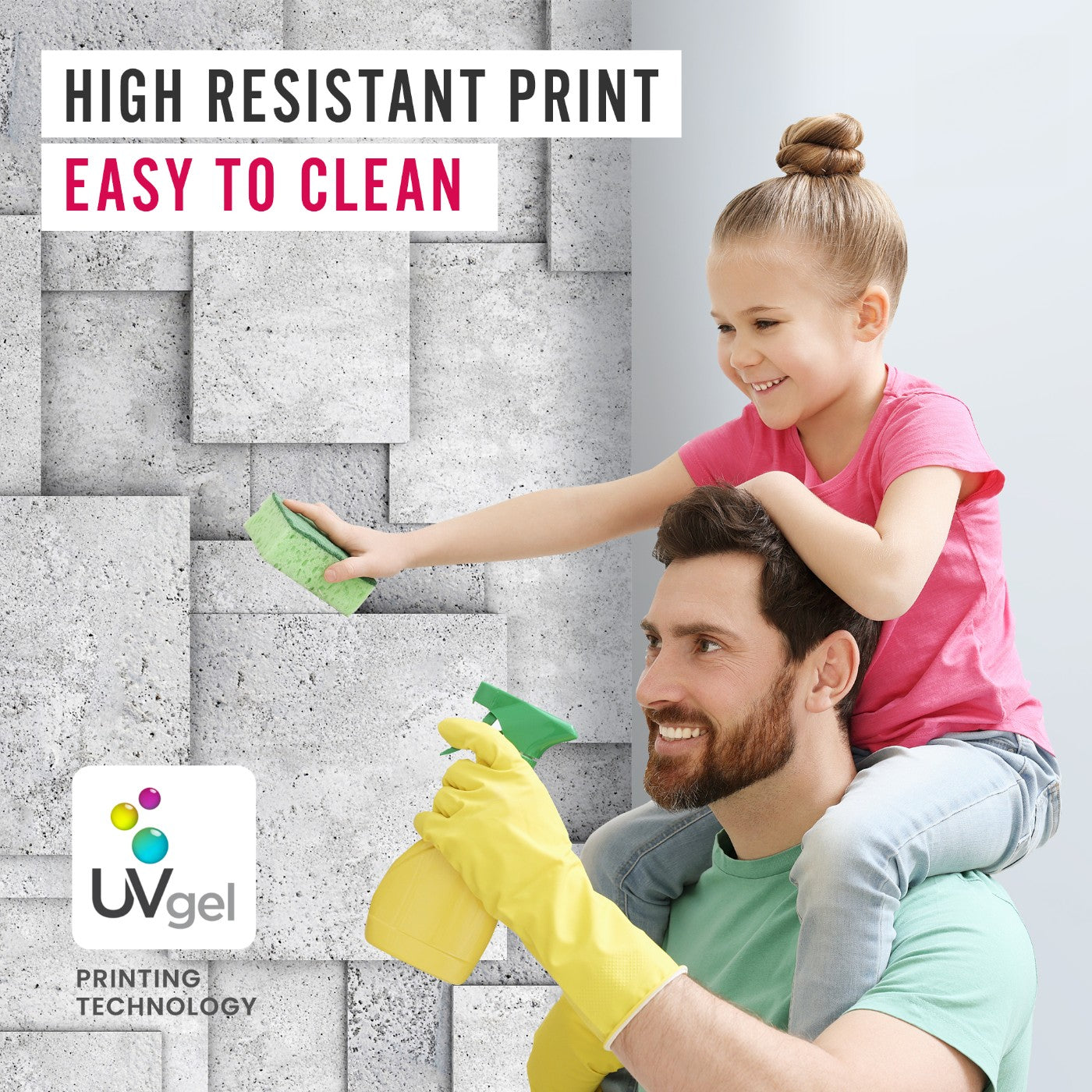 Gamyboje naudojami bekvapiai dažai yra visiškai saugūs aplinkai bei vaikams, atsparūs UV spinduliams ir vandeniui. Aukšta ryškių spalvų kokybė garantuoja, kad tapetų išvaizda nekis daugelį metų. Dėka naujosios UV gel dažų formulės užtikrinama didelė spalvų koncentracija ir net mažiausių detalių ryškumas bei vaizdo stabilumas.