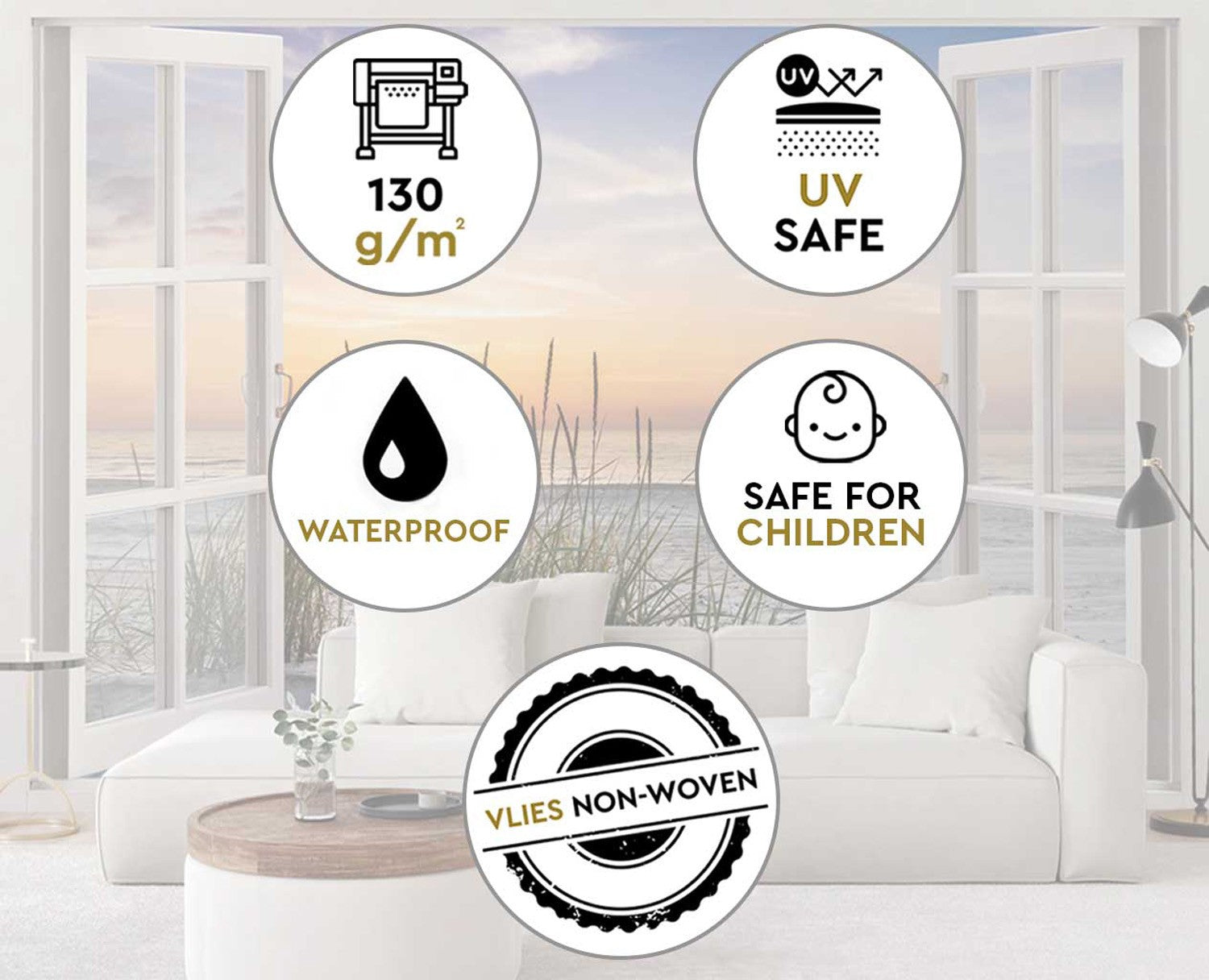 Vokietijoje pagamintas 130 g/m² flizelinas. 100 % sertifikuotas gaminys. Paviršius yra matinis, lygus (ne tekstūrinis), todėl organiškai ir jaukiai įsilieja į interjerą.