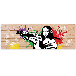 Paveikslas ant drobės, Banksy, Mona Lisa Bazooka plytų fone