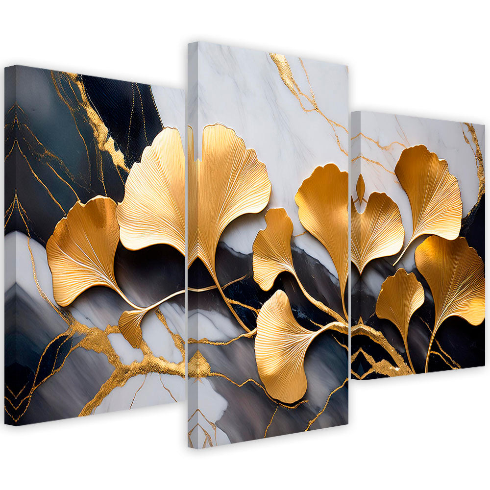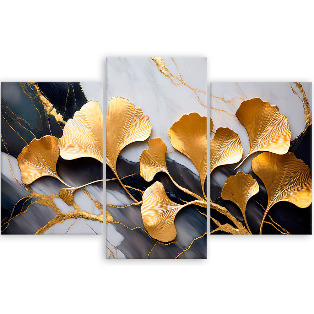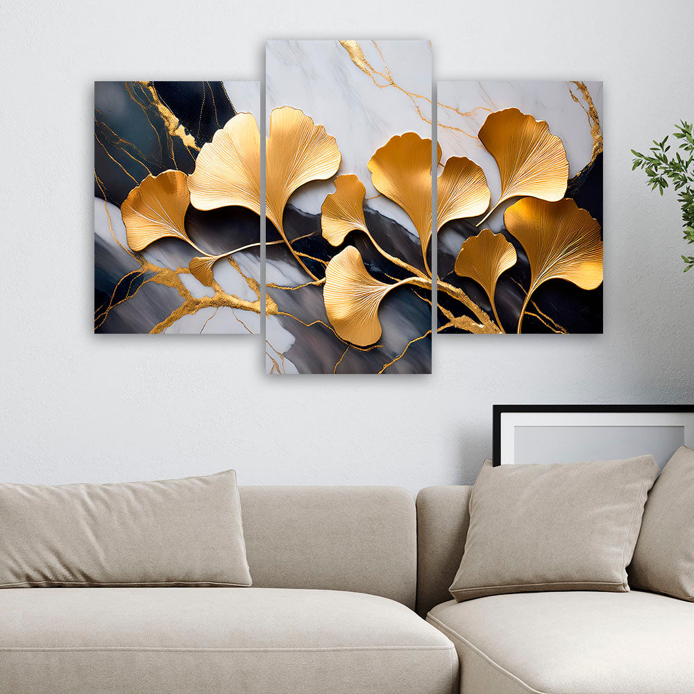 Trijų dalių paveikslas ant drobės, Ginkmedžio lapai marmuro fone