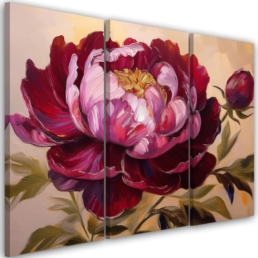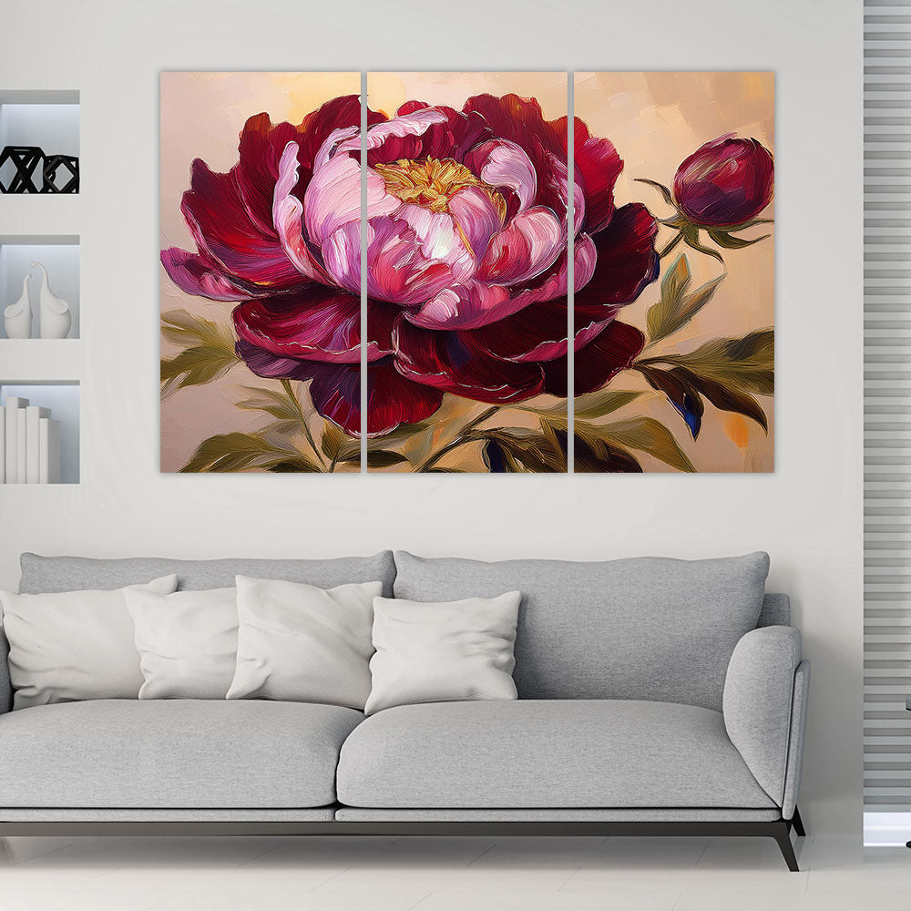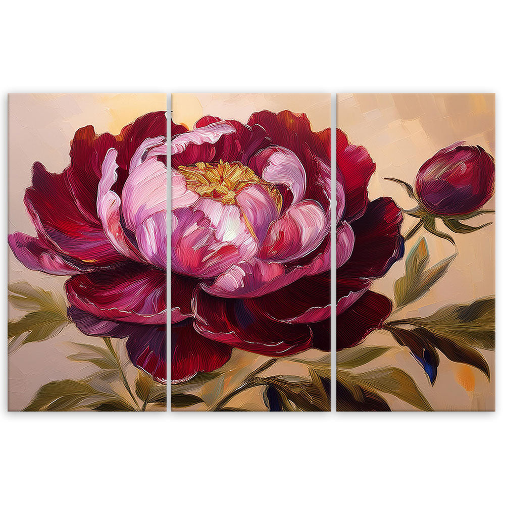 Trijų dalių paveikslas ant drobės, Tapytas bordo bijūno žiedas