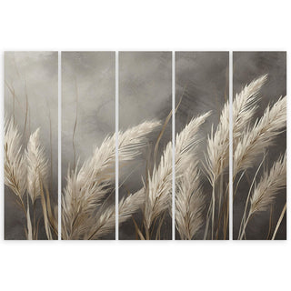 Penkių dalių paveikslas ant drobės, Nendrės pilkame fone