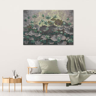 Paveikslas ant drobės, Žali lotoso lapai rūke