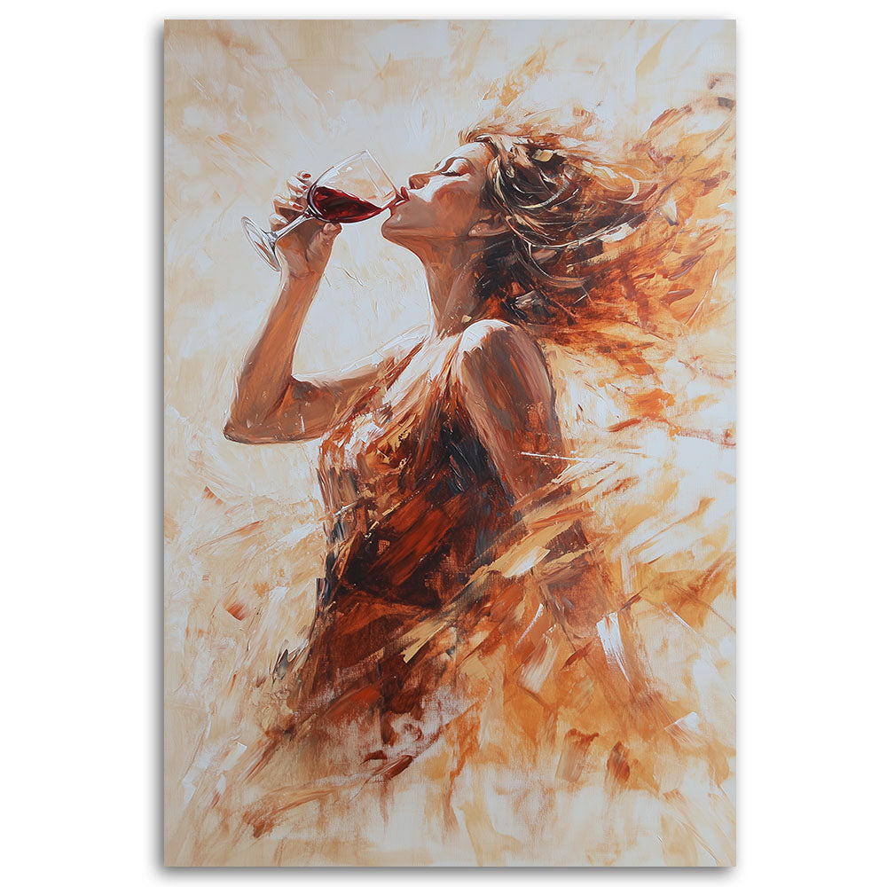 Paveikslas ant drobės, Moteris ir raudono vyno taurė
