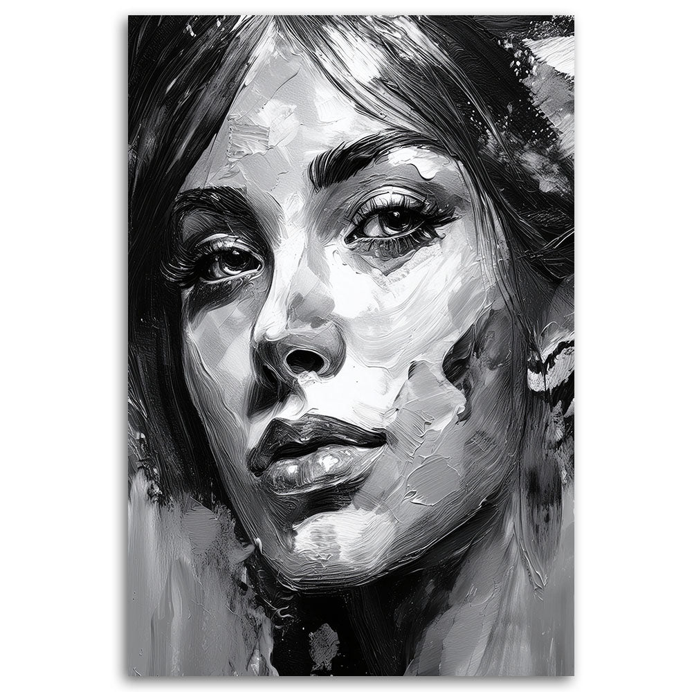 Paveikslas ant drobės, Monochrominis moters portretas iš arti