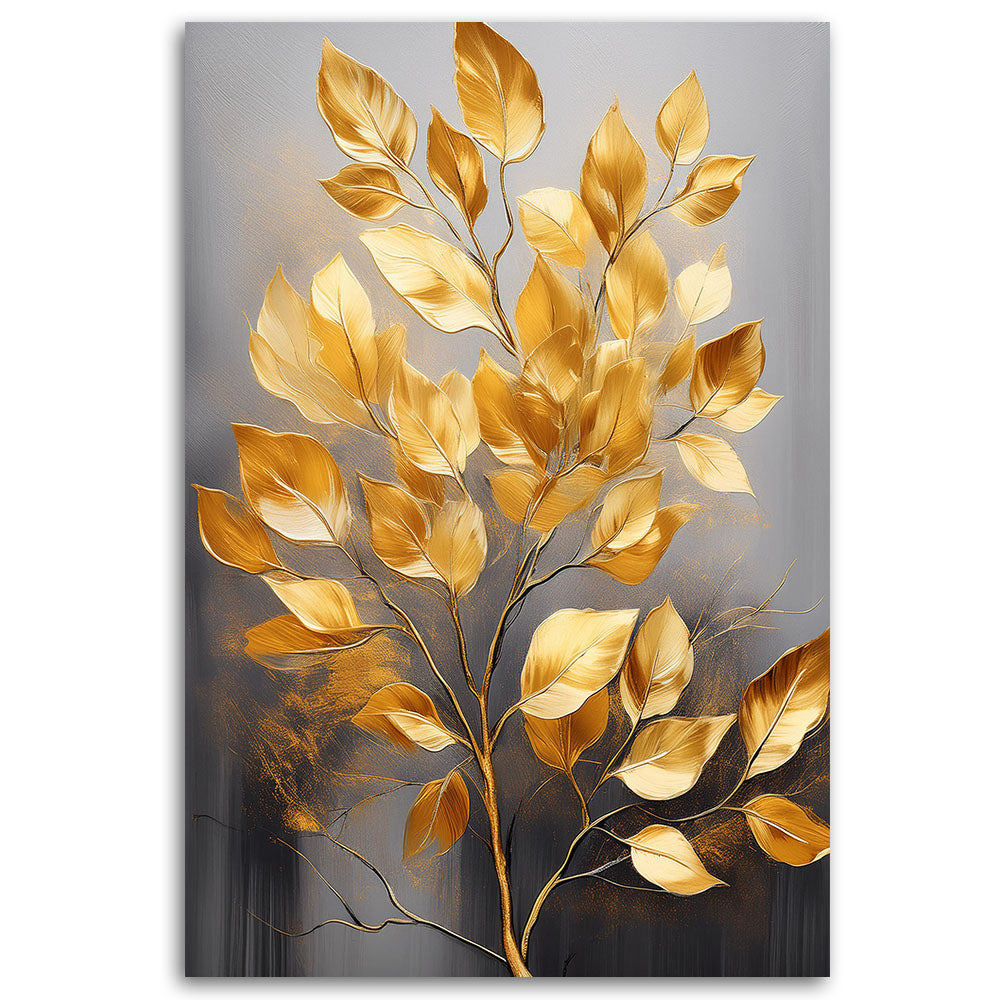 Painting on canvas, Golden twig on a gray background