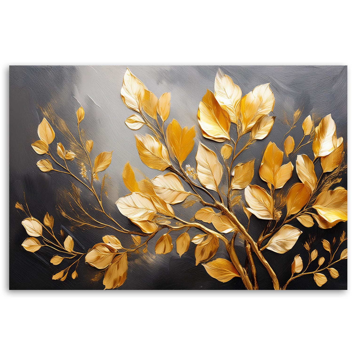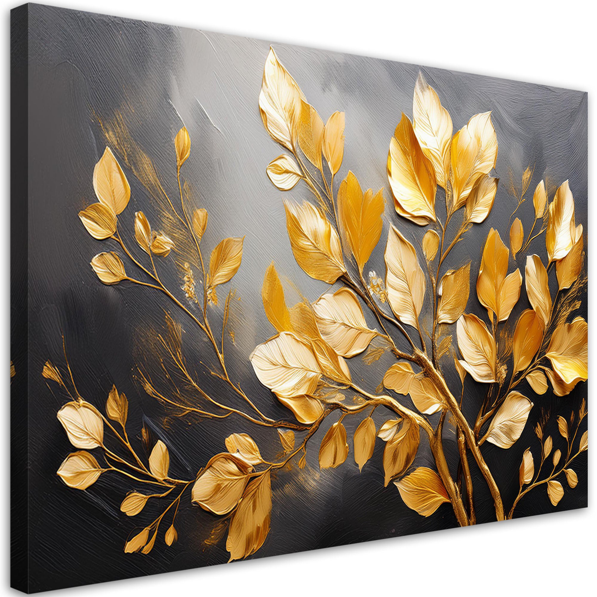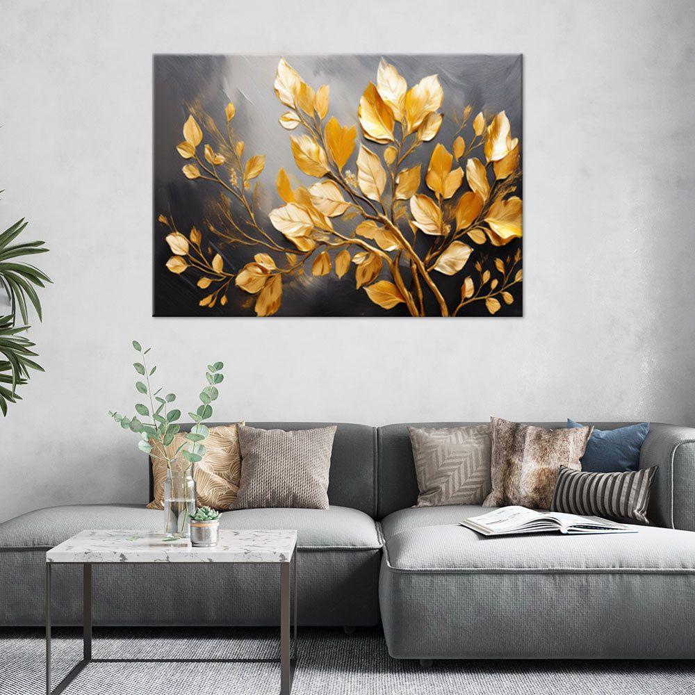 Painting on canvas, Gold leaves on a dark background