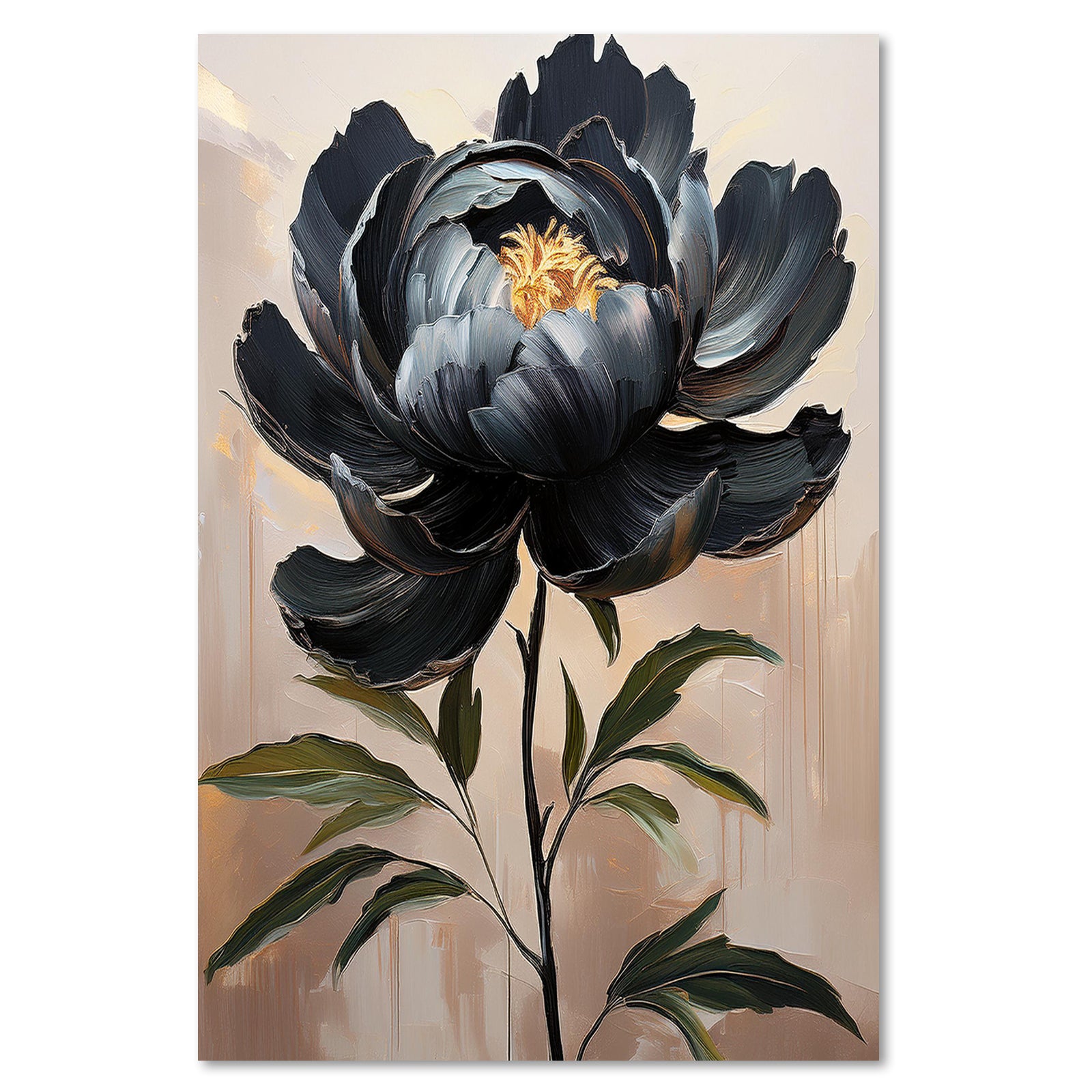 Painting on canvas, Black Peony Flower