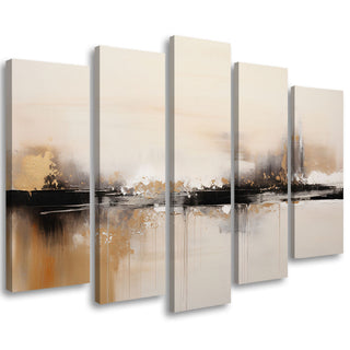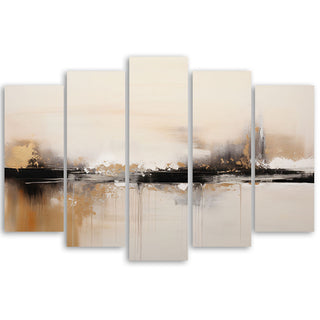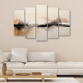 Five-part painting on canvas, Abstraction of mountain magic in golden mist