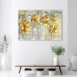 Five-part painting on canvas, Blooming golden tree in white blossoms