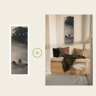 Send us a vertical photo of the wall of your home, and we will "paste" the picture, clock or hanger of your choice there and send it back to you. And that's it!