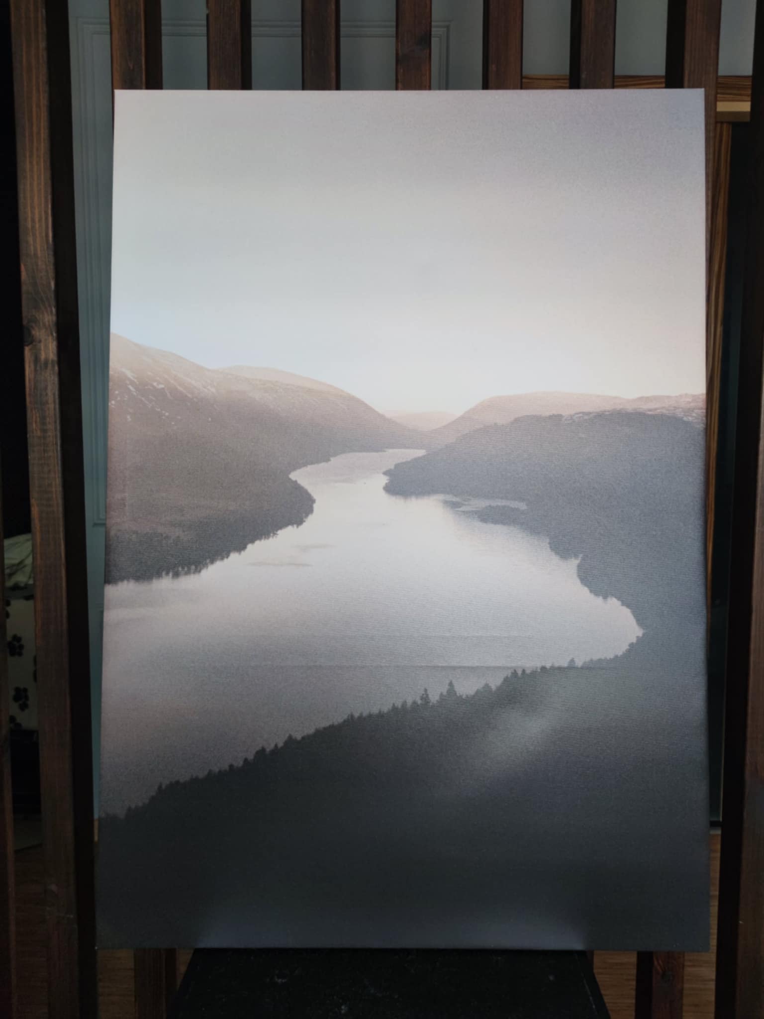 Aukščiausios kokybės 240 g/m2 drobė, užtempta ant 2 cm MDF rėmo.